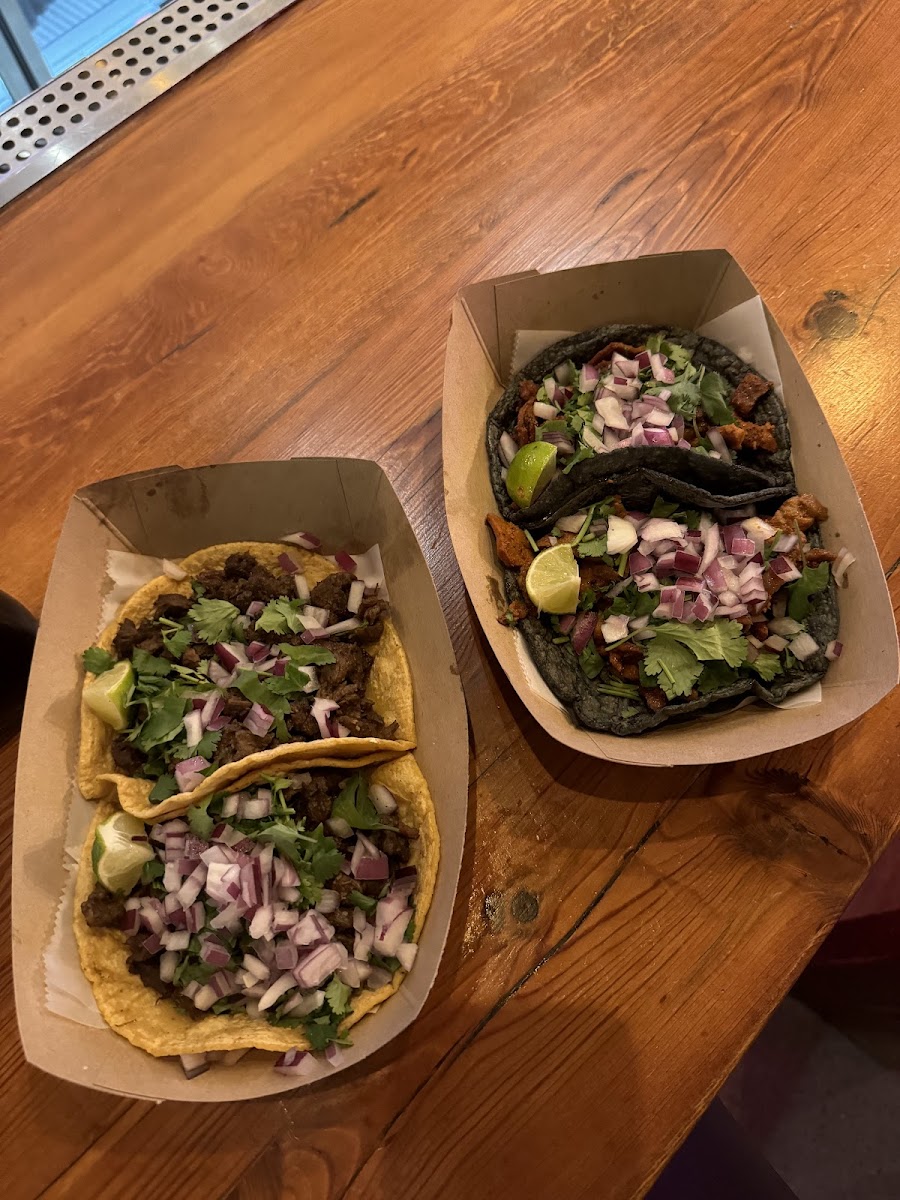 OMG….these tacos were so delicious. The steak taco was seasoned well and the chicken taco was juicy. I had the cactus and mushroom taco for the first time, but I didn’t care for them. I’m definitely a meat eater. I found it strange that they didn’t have shrimp tacos. They offered a variety of shared sauces and the seating is shared. Tacos were $6 each and worth it. I usually eat 3 tacos, but I could’ve just ordered 2 and been satisfied. I’ll go back and recommend the place.